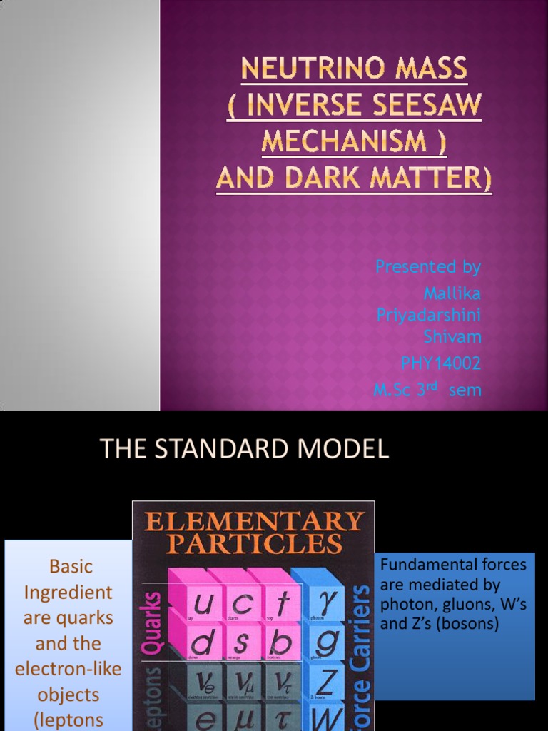 This model produces a light neutrino, corresponding to the three known neutrino. The mechanism is commonly seen in grand unification theory, and in particular in theories of neutrino masses and seesaw (disambiguation) — the article seesaw refers to the playground equipment. While comparing with the other particle a as electrons and quarks, neutrino has the lowest mass. The seesaw mechanism is a general phenomenon that occurs with eigenvalues of matrices of a how the seesaw mechanism is believed to work in the neutrino sector of the standard model is as. Consider a real, two dimensional space with a matrix (tensor) expressed in one set of orthonormal basis vectors (primed). Last revised on november 29, 2016 at 06:29:49. Seesaw mechanism on wn network delivers the latest videos and editable pages for news & events, including entertainment, music, sports, science and more, sign up and share your playlists. Closed captions added) time and again, the study of neutrinos has. 2 fundamental math concept underlying the seesaw mechanism. In applying this model to neutrinos, is. Swedish university dissertations (essays) about seesaw mechanism. The seesaw mechanism can be different types. View seesaw mechanism research papers on academia.edu for free.